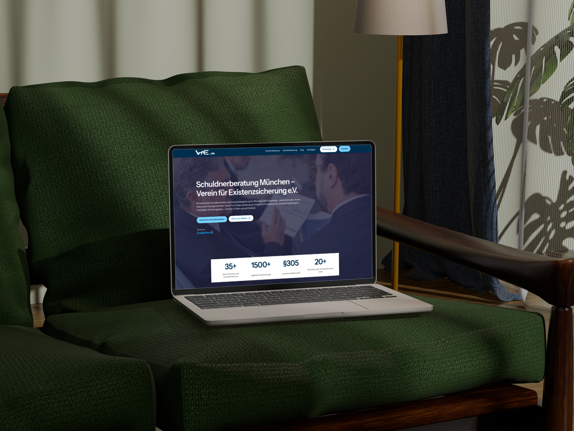 Die Münchner Marketingfabrik entschied sich für einen klaren Relaunch mit einer zentralen, starken Webseite. Mit hochwertigen Verlinkungen, problemorientierten Blogbeiträgen und präziser SEO wurde ein professioneller Auftritt geschaffen, der Vertrauen vermittelt – besonders für Menschen in finanziell schwierigen Situationen.